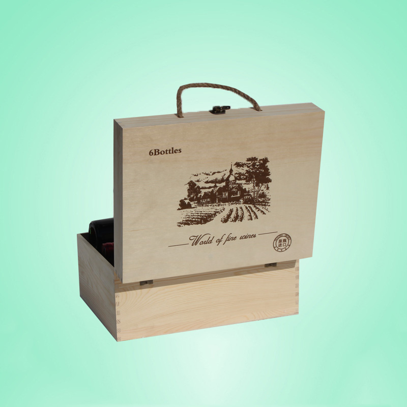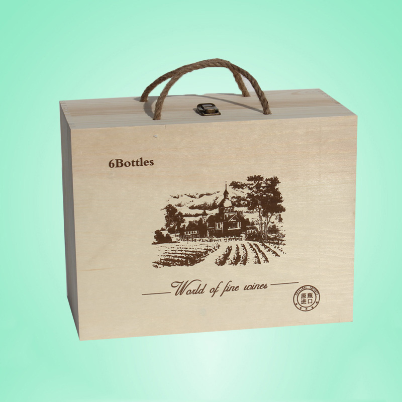 6瓶裝一盒紅酒包裝仿進口木頭箱